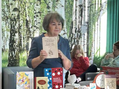 W ramach cyklu „Porozmawiajmy o książce” 5 listopada w bibliotece szkolnej odbyły się spotkania uczniów z panią Danutą Radomską-Filipek, członkiem Lewis Carroll Society