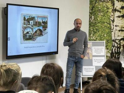 3 grudnia w szkolnej bibliotece odbyło się spotkanie z cyklu „Porozmawiajmy o książce” z kierownikiem Galerii Historii Miasta panem Marcinem Boratynem, autorem monografii o kościele św. Katarzyny w Jastrzębiu-Zdroju.