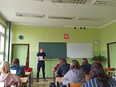 z ratownikiem medycznym Jakubem Grochowskim. Tematem zajęć była analiza Karty medycznych czynności ratunkowych.
