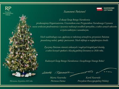 Biblioteka szkolna życzy całej społeczności Korfantego spokojnych Świąt Bożego Narodzenia i przekazuje życzenia od Pary Prezydenckiej.