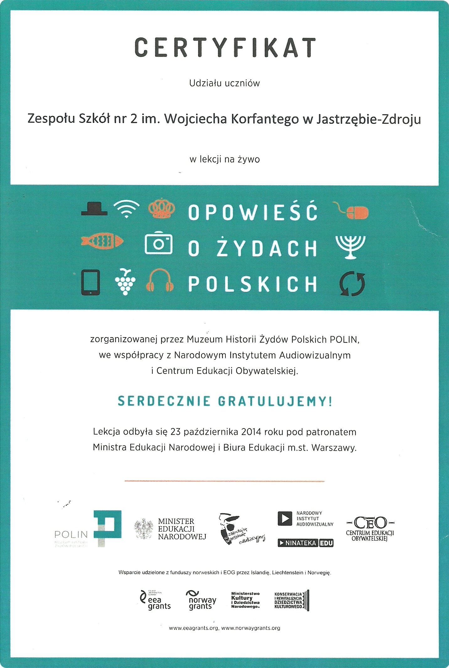 Narodowej, a za udział w lekcji nasza szkoła
