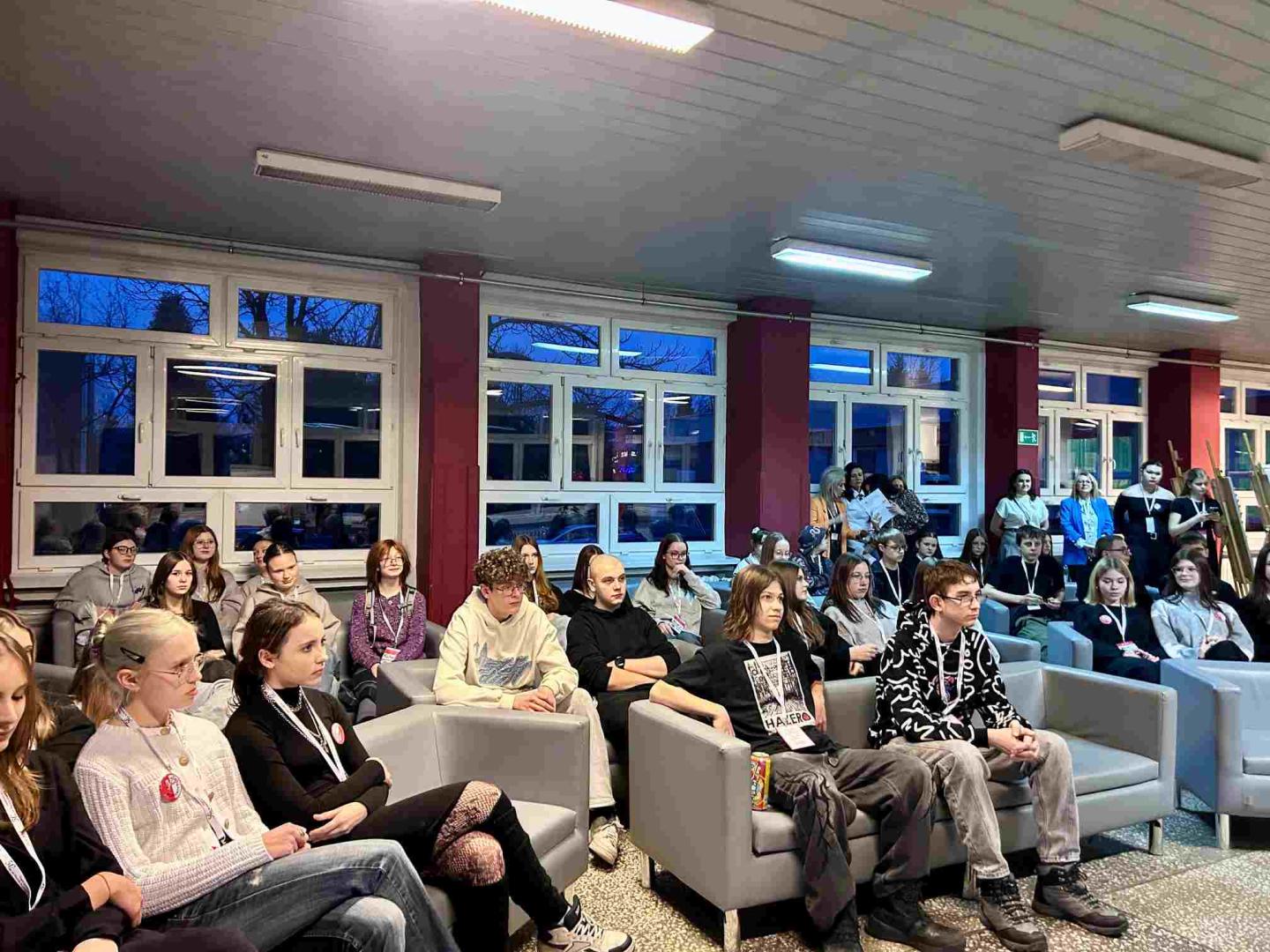 Dla osób chcących odpocząć przygotowano spokojniejszą przestrzeń: w Bibliotece czekały magiczne anaglify, gry stołowe oraz miejsce do integracji. Równolegle na sali kinowej odbywała się Debata Oxfordzka zatytułowana „Sztuka argumentacji”. Uczniowie mogli zobaczyć, jak w praktyce wygląda kulturalna, oparta na zasadach wymiana poglądów oraz jak budować logiczne, przekonujące argumenty. Debata cieszyła się dużym zainteresowaniem i pokazała wysoki poziom zaangażowania uczestników. Podwieczorek dla ósmoklasistów okazał się dobrym wydarzeniem łączącym naukę, kreatywność i integrację. Bogaty program zajęć pozwolił gościom poznać różnorodność szkolnej oferty oraz poczuć atmosferę panującą w naszej placówce. Dzięki zaangażowaniu nauczycieli i uczniów przygotowano spotkanie, które nie tylko bawiło, ale także inspirowało i motywowało do dalszej edukacji. Cieszymy się, ze Zespół Szkól Nr 2 odwiedziło, aż 80 uczniów klas ósmych. |