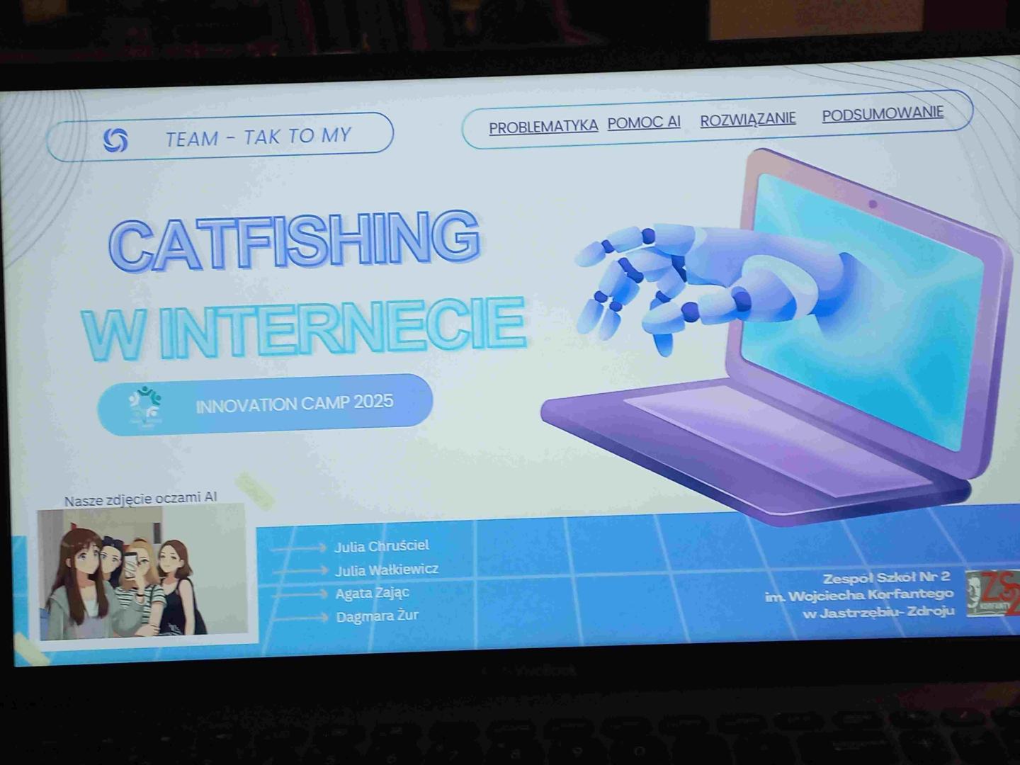 Temat tegorocznej edycji Innovation Camp 2025 był szczególnie istotny dla pokolenia młodych ludzi dorastających w erze mediów społecznościowych. Uczestnicy stanęli przed zadaniem opracowania narzędzi AI, które pomagają przeciwdziałać negatywnemu wpływowi social mediów na dobrostan psychiczny młodzieży. Młode ekonomistki zostały docenione za aplikację TrustBuddyAI, która skutecznie przeciwdziała problemowi catfishingu, czyli podszywania się pod inne osoby w Internecie. To rozwiązanie może znacząco zwiększyć bezpieczeństwo młodych użytkowników platform społecznościowych. Udział w projekcie był dla młodzieży nie tylko świetną przygodą, lecz także okazją do zdobycia doświadczenia, które trudno zdobyć w szkolnej ławce. Projekt pokazał, że przyszłość należy do tych, którzy potrafią myśleć nieszablonowo i odważnie szukać rozwiązań na wyzwania współczesnego świata. Renata Niemczyk |