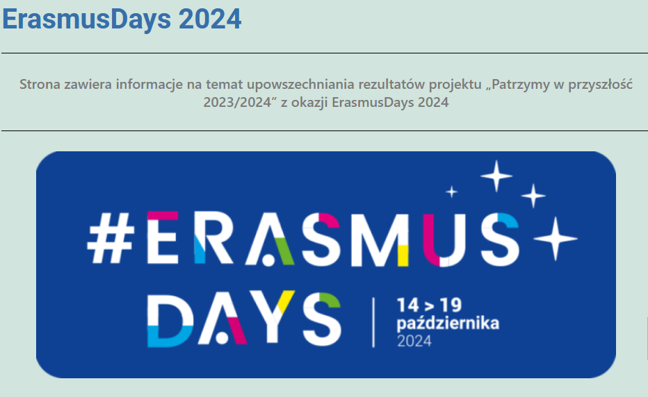 Zapraszamy na stronę internetowa "Projekty w Korfantym" do obejrzenia zdjęć i relacji z całego tygodniahttps://projekty.zs2.jastrzebie.pl/erasmus-days-2024/