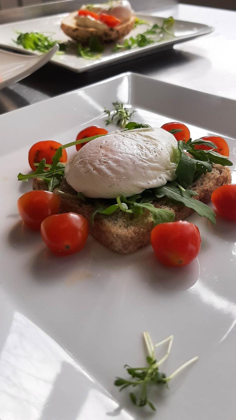 Jajko poszetowe to inaczej jajko poche (z języka francuskiego) lub jajko w koszulce. Dlaczego w koszulce? W jajku poszetowym płynne żółtko otulone jest przez ścięte białko niczym koszulką. Podaje się solo jako samodzielne danie śniadaniowe lub jako dodatek do zielonych warzyw. Do szpinaku lub szparagów. Jajko poszetowe jest lekko strawne i dietetyczne. Zobaczcie, jakie propozycje podania jaja poszetowego mieli uczniowie 2CT. Pamiętajcie, śniadanie to jeden z ważniejszych posiłków w ciągu dnia, a pięknie podane jajo może zachwycić nie tylko głodomorów. Barbara Omylakowska |