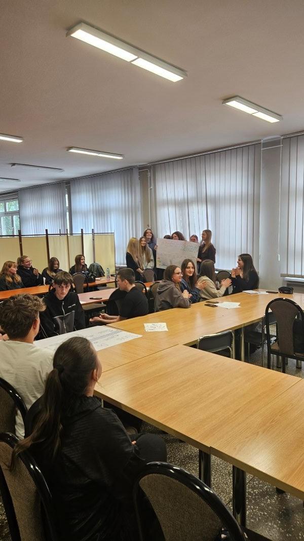 Tematem zajęć było projektowanie działań wspierających transformację. Uczniowie pracowali w grupach, próbując odpowiedzieć na ważne pytanie „Jak zmieniać świat lokalnie?”. Ciekawe i odważne pomysły pokazały, jak bardzo kreatywni są nasi uczniowie. Gdyby dało się wszystkie ich pomysły zrealizować, to do 2036 roku Jastrzębie-Zdrój stałoby się metropolią z prawdziwego zdarzenia. Pomysły są, teraz trzeba tylko zadbać o możliwość ich realizacji… JK |