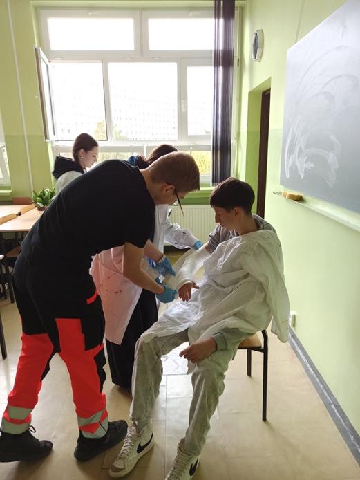 Uczennice z dużym zaangażowaniem wykonywały polecenia ratownika, a pozorant potwierdził, że unieruchomienie jest wykonane idealnie. Uczniowie w ćwiczeniach wykorzystali również poznane wcześniej zasady bandażowania i obwoje, których uczyli się na lekcjach elementów ratownictwa medycznego. Bożena Araszczuk |