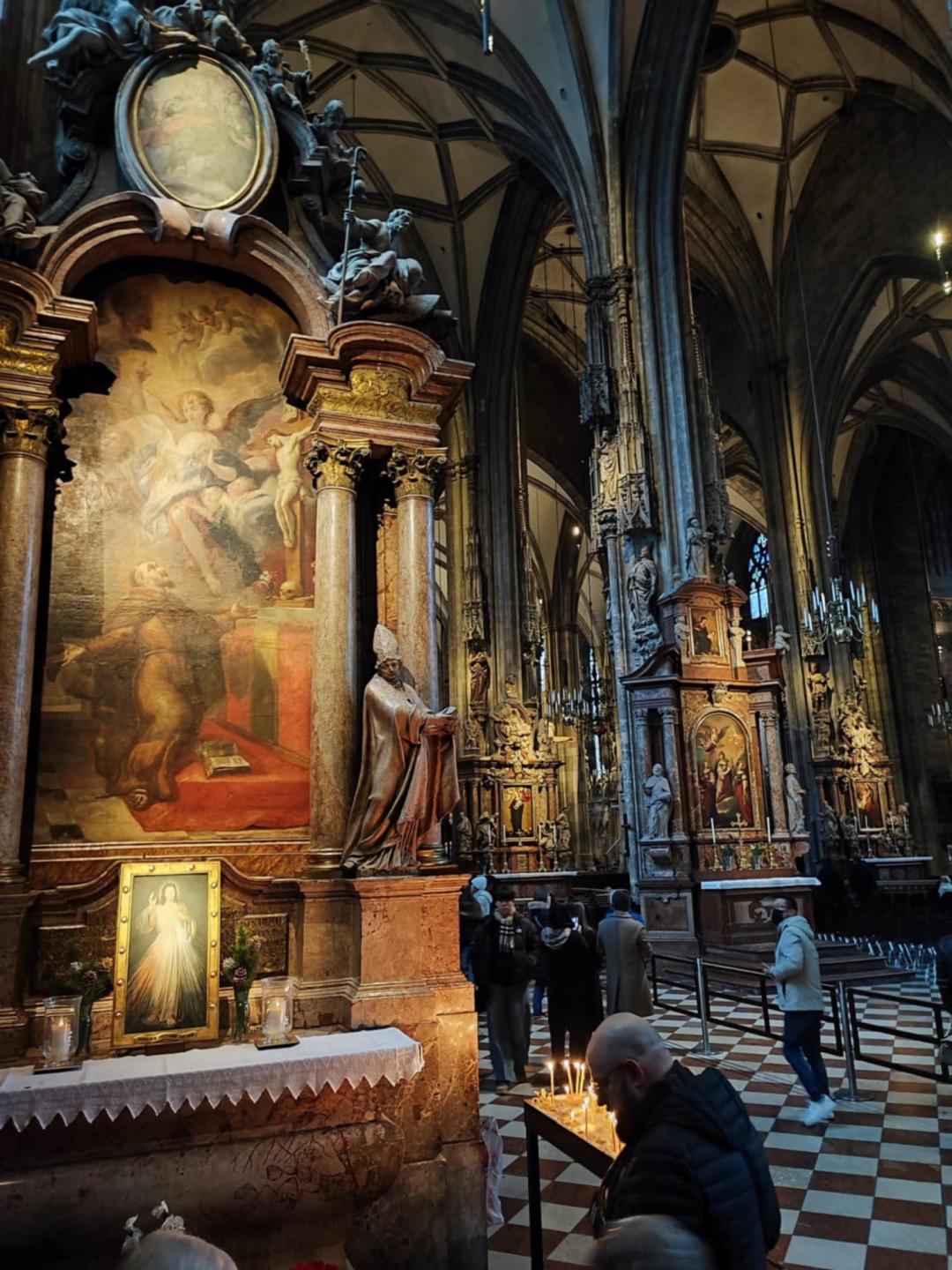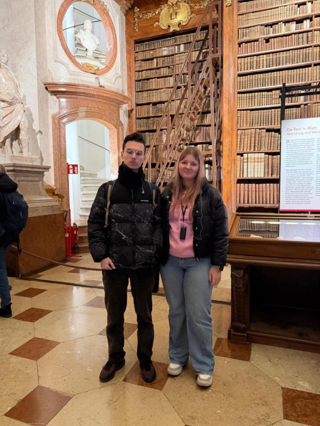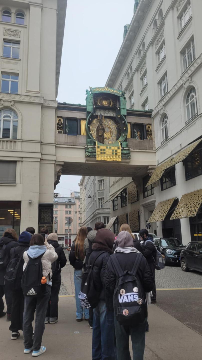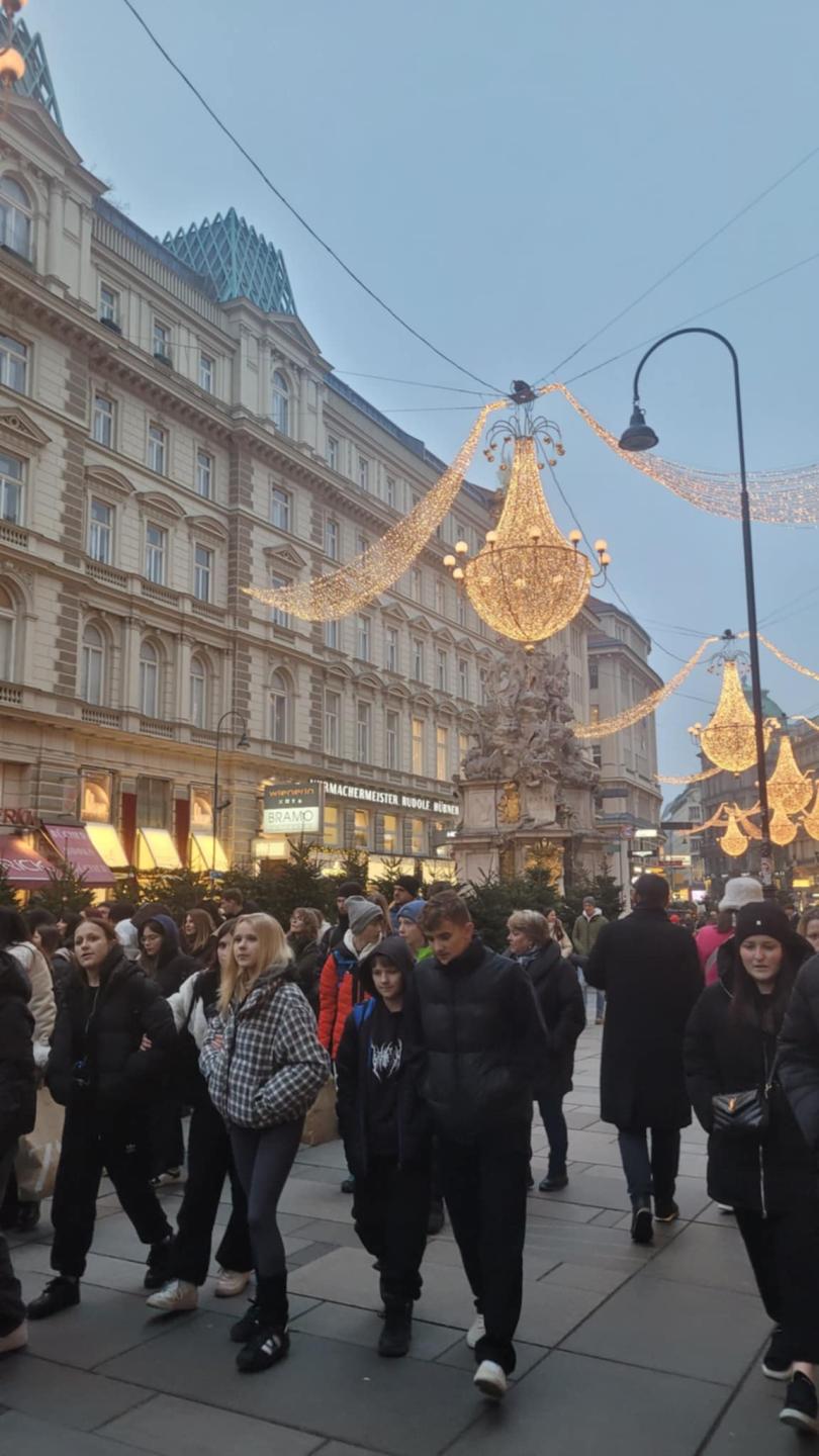 Naszą wycieczkę rozpoczęliśmy od Hundertwasserhaus – niezwykłego budynku zaprojektowanego przez artystę Friedensreicha Hundertwassera. Kamienica charakteryzuje się nieregularnymi kształtami, kolorowymi ścianami i zielonymi dachami, co czyni go jednym z najbardziej osobliwych i rozpoznawalnych miejsc w mieście. Kolejnym punktem był Hofburg – potężny pałac, który przez wieki był siedzibą Habsburgów, jednej z najpotężniejszych dynastii Europy. Spacerując po dziedzińcach, dowiedzieliśmy się, że kompleks ten powstawał od XIII wieku i łączy różne style architektoniczne, od renesansu po barok i klasycyzm. Dziś mieści się tu m.in. oficjalna rezydencja prezydenta Austrii. W samym centrum miasta zatrzymaliśmy się przy Katedrze św. Szczepana, która jest jednym z najważniejszych symboli Wiednia. Jej gotyckie wieże dominują nad panoramą miasta, a kolorowy dach z mozaikowymi płytkami jest rozpoznawalny na zdjęciach podróżników z całego świata. Wieża ma aż 136 metrów wysokości, a budowę katedry zaczęto w XIV wieku. Zawędrowaliśmy także do Austriackiej Biblioteki Narodowej. Zbiory biblioteki liczą ponad 12 milionów dokumentów — to jedna z największych bibliotek w Europie. Na koniec dotarliśmy do imponującego Ratusza w Wiedniu, który zachwyca neogotycką architekturą i strzelistymi wieżami. Wokół ratusza znajduje się ogromny plac, który zimą zamienia się w jedno z największych jarmarków bożonarodzeniowych w Wiedniu z setkami stoisk i ogromnym lodowiskiem. Na stoiskach można było spróbować tradycyjnych austriackich smakołyków, a także kupić rękodzieło i ozdoby świąteczne. Wycieczka do Wiednia była nie tylko okazją do zobaczenia najważniejszych zabytków, ale też do poczucia wyjątkowej atmosfery tego miasta. Była to niezapomniana lekcja historii i sztuki. Opiekunowie wycieczki: Żaneta Ciuksa-Macoń Małgorzata Lach Agata Tucka-Marek Mirosław Bury |