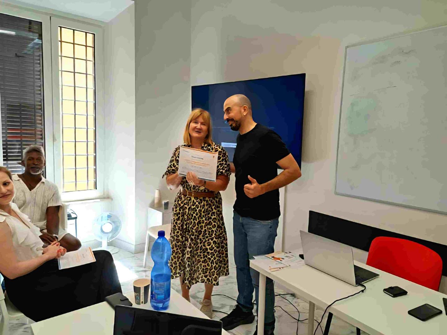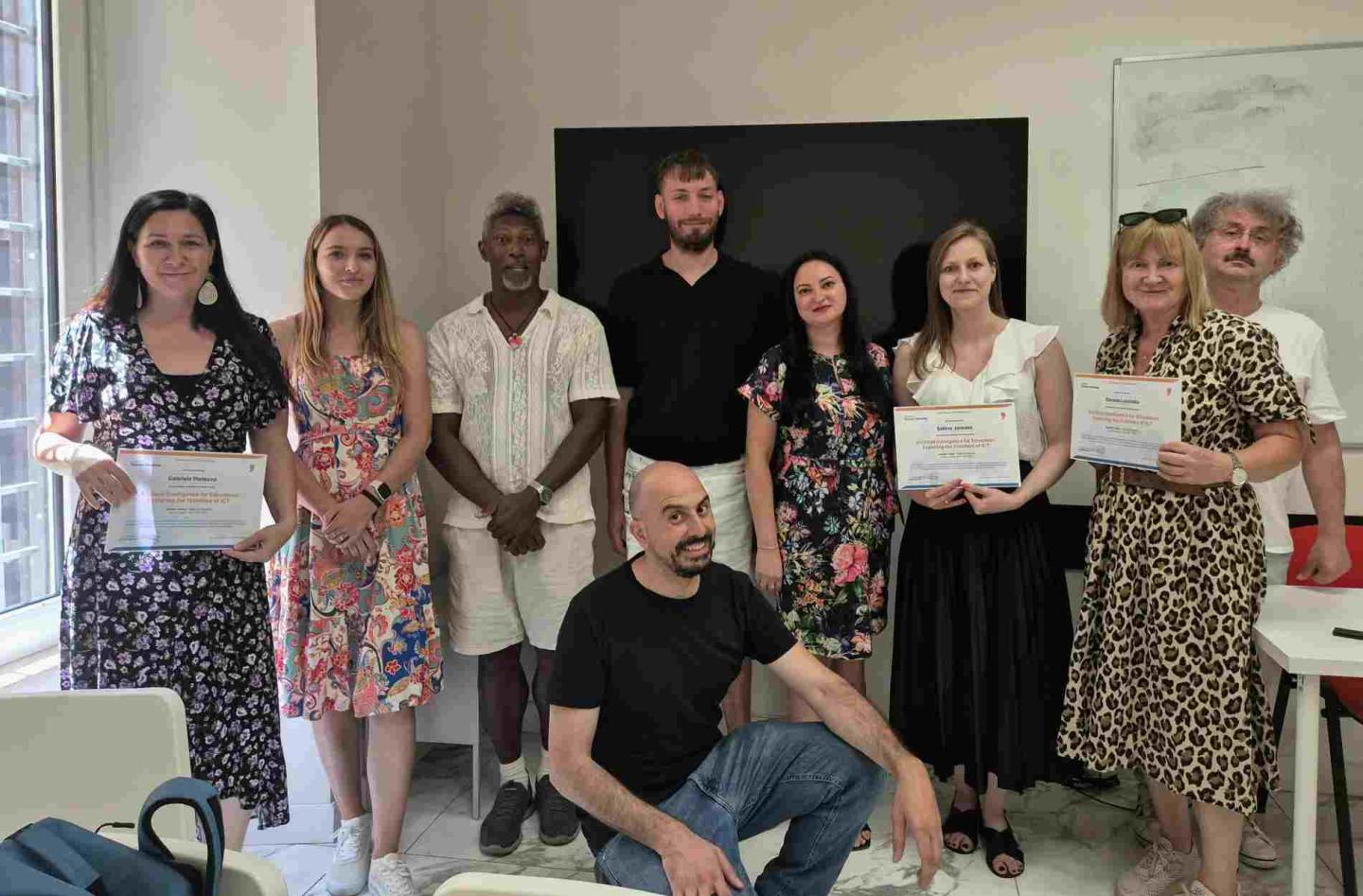 Podczas kursu omówiliśmy szeroki wachlarz zagadnień związanych z AI – od podstaw działania algorytmów, przez etyczne aspekty wykorzystania sztucznej inteligencji w szkole, po konkretne narzędzia i aplikacje wspierające nauczycieli. Poznaliśmy praktyczne przykłady wykorzystania AI do personalizacji procesu nauczania, automatycznego oceniania prac, tworzenia materiałów dydaktycznych czy generowania pomysłów na zajęcia. Zajęcia miały charakter warsztatowy – każdy uczestnik mógł testować narzędzia AI i omawiać ich potencjał w kontekście własnych przedmiotów. Bardzo cenne były również dyskusje w międzynarodowej grupie nauczycieli, dzięki którym mogliśmy porównać doświadczenia i pomysły z różnych krajów. Oprócz części merytorycznej mieliśmy okazję zwiedzić Rzym i doświadczyć jego niezwykłej atmosfery. Spotkania integracyjne pozwoliły nawiązać nowe kontakty i stworzyć sieć współpracy, która z pewnością zaowocuje w przyszłości. Udział w kursie dał mi nowe spojrzenie na możliwości AI w edukacji i zmotywował do wdrożenia innowacyjnych rozwiązań w mojej pracy. Planuję podzielić się zdobytą wiedzą z zespołem nauczycieli w mojej szkole, aby wspólnie rozwijać kompetencje cyfrowe i efektywniej wspierać uczniów w procesie uczenia się. Danuta Łozińska Sfinansowane ze środków UE. Wyrażone poglądy i opinie są jedynie opiniami autora lub autorów i niekoniecznie odzwierciedlają poglądy i opinie Unii Europejskiej lub Europejskiej Agencji Wykonawczej ds. Edukacji i Kultury (EACEA). Unia Europejska ani EACEA nie ponoszą za nie odpowiedzialności.
