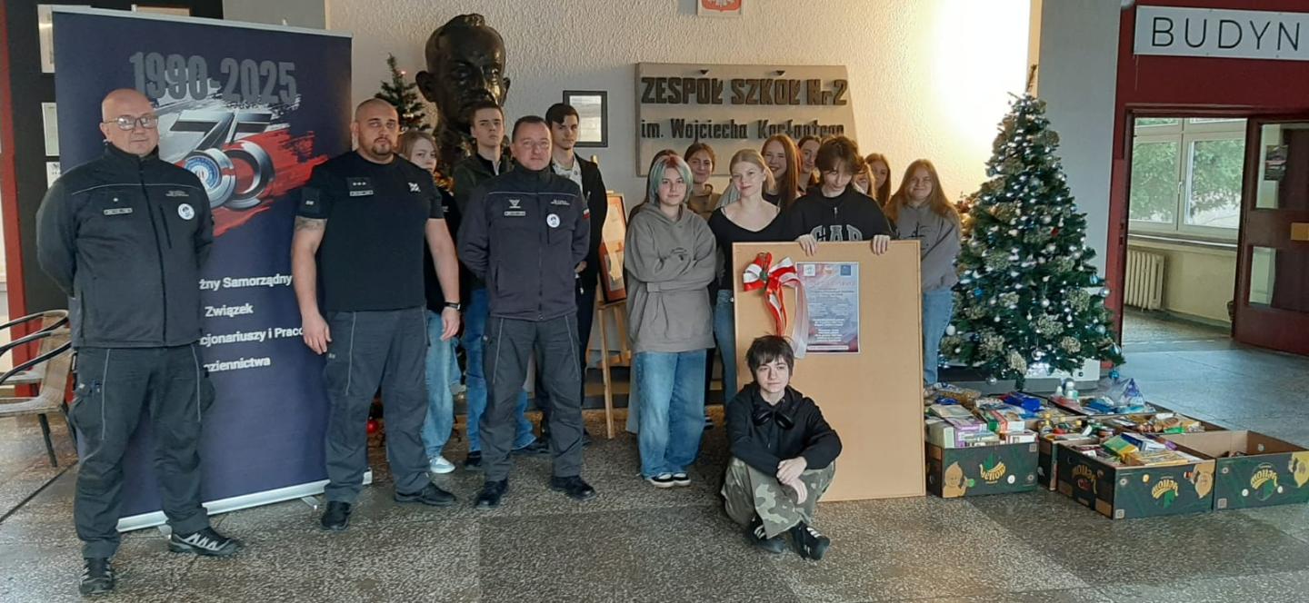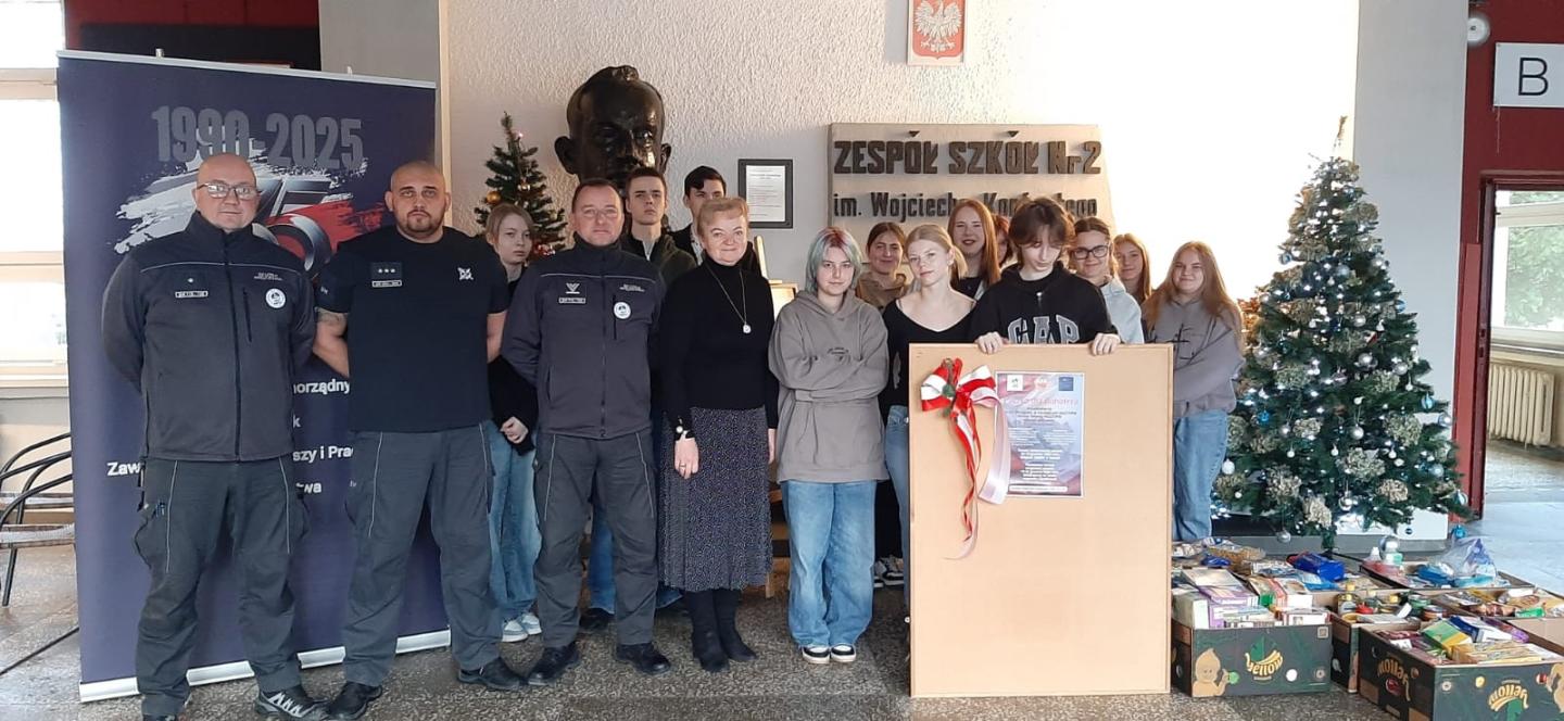 Uczniowie naszej szkoły już po raz czwarty włączyli się do ogólnopolskiej akcji PACZKA DLA BOHATERA. W jej ramach, pomoc w ciągu całego roku a szczególnie w okresie świątecznym, trafia do żołnierzy - weteranów II wojny światowej, żołnierzy podziemia niepodległościowego, osób represjonowanych w okresie komunizmu oraz żołnierzy poszkodowanych w czasie współczesnych misji pokojowych. W akcję tradycyjnie włączają się służby mundurowe z całej Polski. W tym roku nawiązaliśmy współpracę z przedstawicielami Służby Więziennej z woj. śląskiego, którzy, podobnie jak my, chętnie poświęcają swój czas, energię i dobre serce dla szlachetnego celu – pomagania potrzebującym. Tym razem nasze dary przeznaczono głównie dla 25 żyjących jeszcze weteranów II wojny światowej, mieszkających w naszym województwie. Zbiórka produktów żywnościowych i środków czystości, poprzedzona akcją informacyjną prowadzona była w grudniu, zaangażowało się w nią ok. 100 uczniów z 8 klas. Dzięki hojności uczniów i ich rodziców udało się zebrać prawie 260 kg produktów. W zbiórkę, segregację produktów, sprawdzanie ich przydatności dla potrzebujących i pakowanie 9 wielkich kartonów uczniowie włożyli dużo serca i zapału. Odbiór darów przez przez wolontariuszy Służby Więziennej był połączony z bardzo ciekawą lekcją, którą przeprowadzili dla uczniów kl. III a LO, biorących aktywny udział w akcji. W myśl zasady „więcej szczęścia jest w dawaniu niż braniu”, uczniowie i ich rodzice przyczynili się do pomocy BOHATEROM, którym tak wiele zawdzięczamy. Składamy serdeczne podziękowania wszystkim, którzy przyczynili się do sukcesu tej pięknej i pożytecznej akcji. Joanna Zdziebło |
