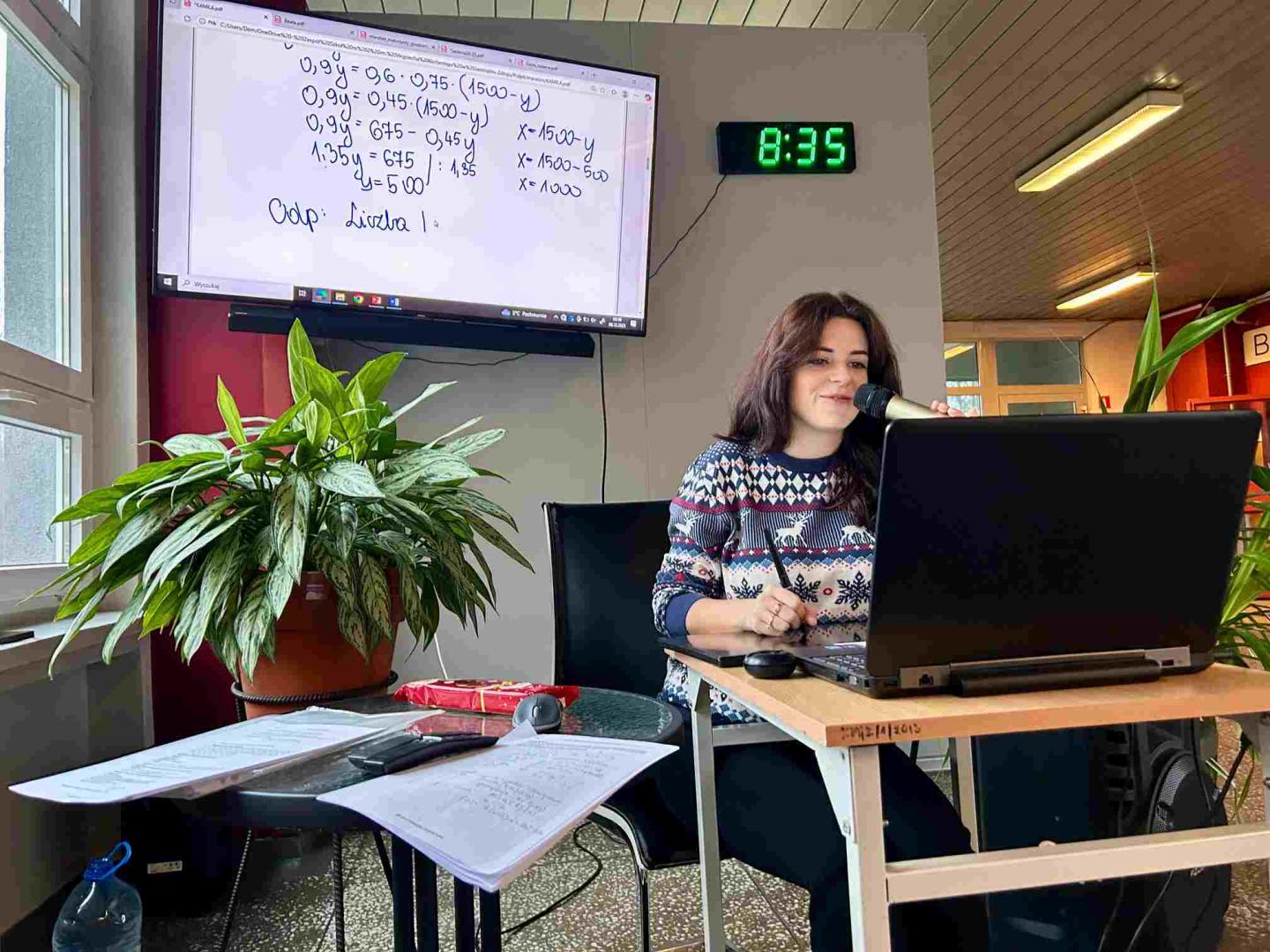 Podczas sobotniego przedpołudnia uczestnicy zmierzyli się z arkuszem maturalnym, który został opracowany w oparciu o aktualne wymagania egzaminacyjne. Praca nad zadaniami przebiegała w atmosferze skupienia i współpracy – uczniowie mieli możliwość na bieżąco konsultować swoje rozwiązania z nauczycielami, co pozwalało na natychmiastowe wyjaśnianie trudniejszych zagadnień i pogłębianie wiedzy. Wydarzenie było nie tylko doskonałą okazją do sprawdzenia swoich umiejętności przed maturą, ale również do wypracowania skutecznych strategii rozwiązywania zadań. Dzięki zaangażowaniu nauczycieli i aktywnej postawie uczniów Maraton Maturalny okazał się cennym doświadczeniem edukacyjnym, które zwiększyło pewność siebie młodzieży w obliczu nadchodzących wyzwań egzaminacyjnych. Podczas spotkania uczestnicy mieli okazję zapoznać się także z najważniejszymi zagadnieniami związanymi z dobrostanem psychicznym i fizycznym, w tym z technikami redukcji stresu, sposobami radzenia sobie z presją egzaminacyjną. Zajęcia dla uczniów przygotowały i poprowadziły nauczycielki matematyki. |