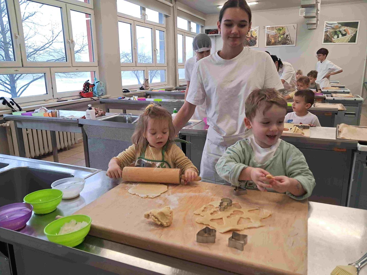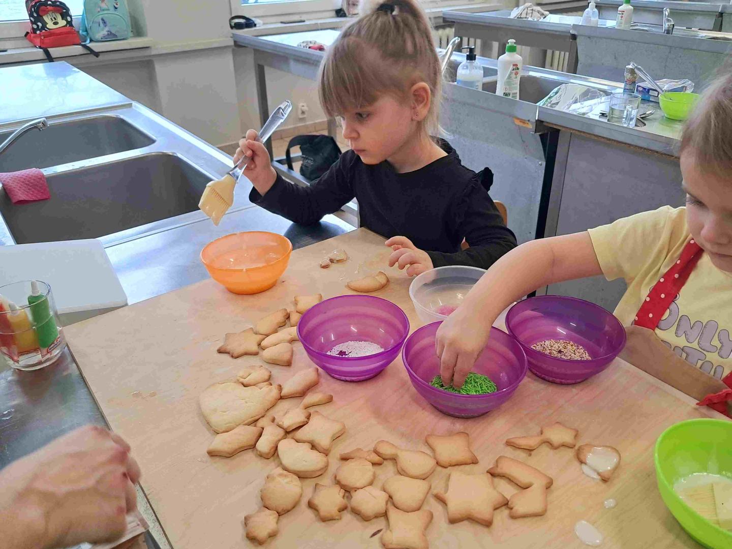 Dzieci poznały składniki potrzebne do przygotowania ciasta i wspólnie zastanawiały się, skąd pochodzą produkty takie jak mąka, jajka czy masło. Każdy przedszkolak mógł samodzielnie wałkować i wykrawać różnorodne kształty, jednak najwięcej radości sprawiło dekorowanie ciasteczek – dzieci korzystały z lukrów, posypek i czekoladowych dodatków, wykazując się niezwykłą kreatywnością. W pracowni unosił się zapach świeżo pieczonych ciasta, a atmosfera była pełna śmiechu i pozytywnej energii. Warsztaty były nie tylko świetną zabawą, ale również okazją do rozwijania samodzielności, zdolności manualnych i współpracy w grupie. To był naprawdę udany i słodki dzień. Dziękujemy uczniom klasy III a BS oraz Paniom Beacie Knopek i Magdalenie Skupień Anna Labza |