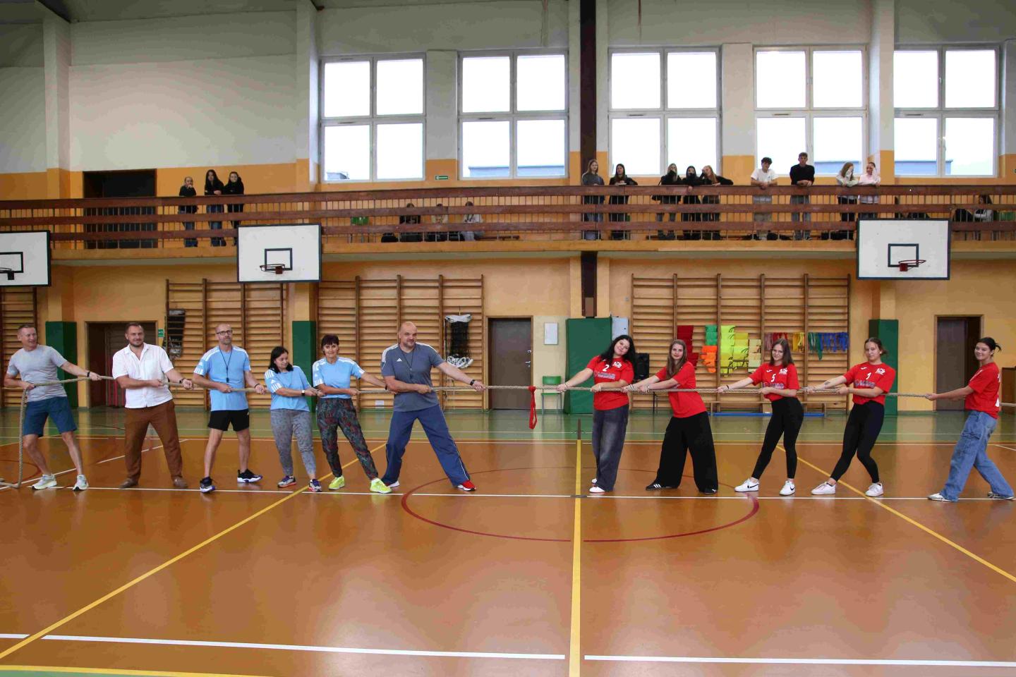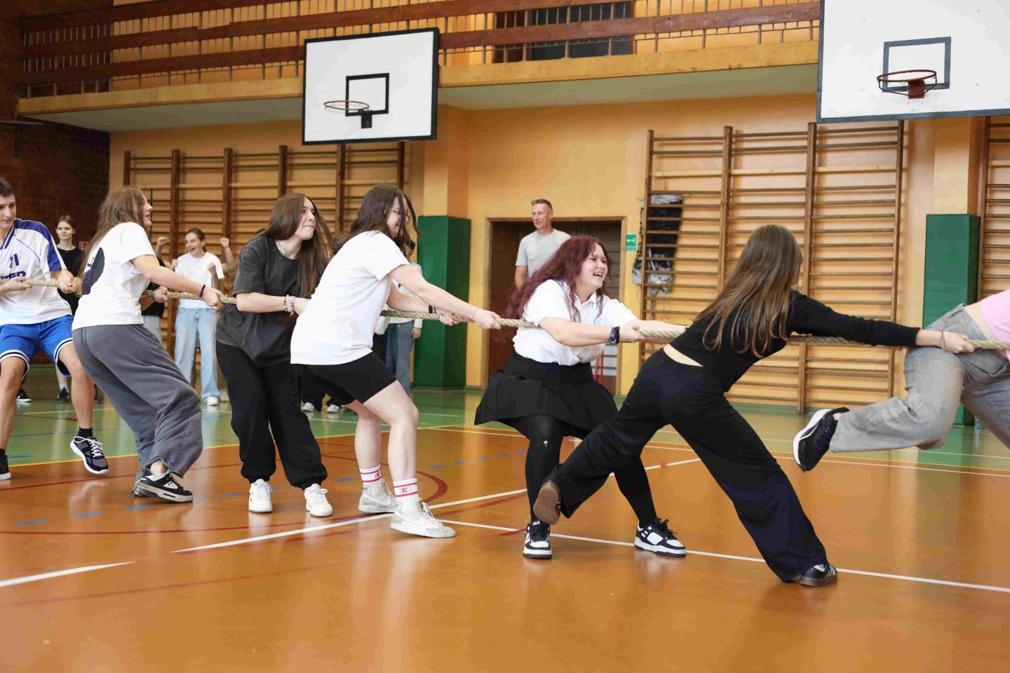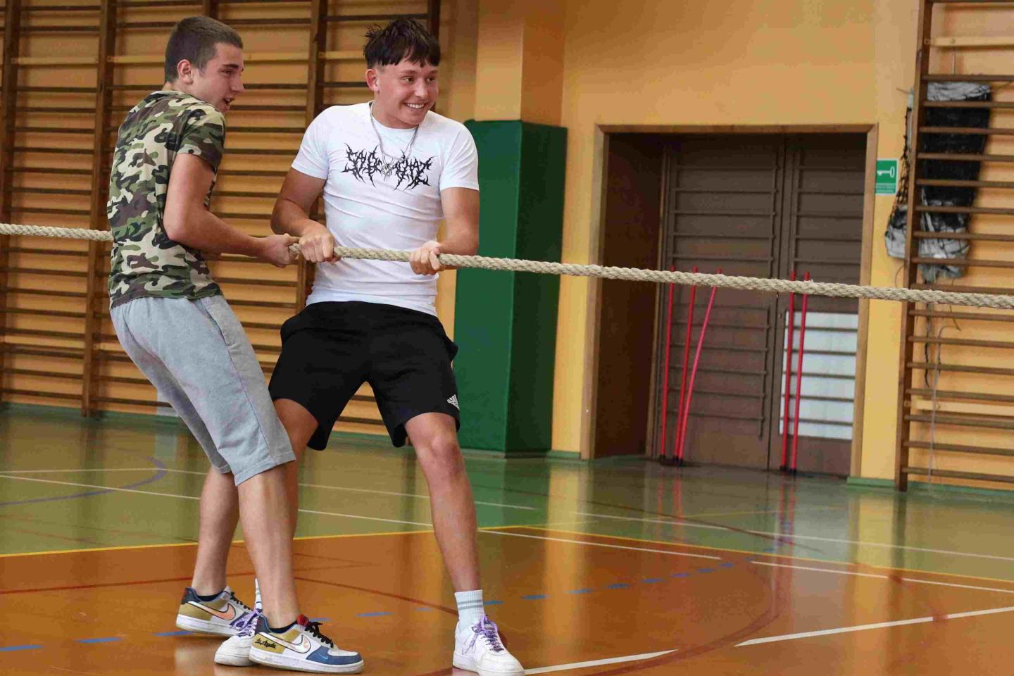 W ramach zajęć sportowych z nauczycielami wychowania fizycznego uczniowie uczestniczyli w bloku rekreacyjnym, który obejmował 4 konkurencje sportowe: rzuty do kosza, tor przeszkód, rzuty do celu, skoki klasowe i przeciąganie liny. W ogólnej klasyfikacji rywalizację wygrała klasa 1 b T. Oprócz sportowych zmagań młodzież klas pierwszych wzięła udział w zajęciach z pedagogami i psychologiem szkolnym oraz w animacjach z grupą sKuMaJ Team. Bardzo dziękujemy Radzie Rodziców i Zakładom Mięsnym HAGA PLUS za ufundowanie poczęstunku dla uczestników integracji. Dziękujemy również uczniom klasy fotograficznej za fotorelację oraz uczniom klasy gastronomicznej, która pod okiem p. Kingi Nikiel przygotowała poczęstunek. |