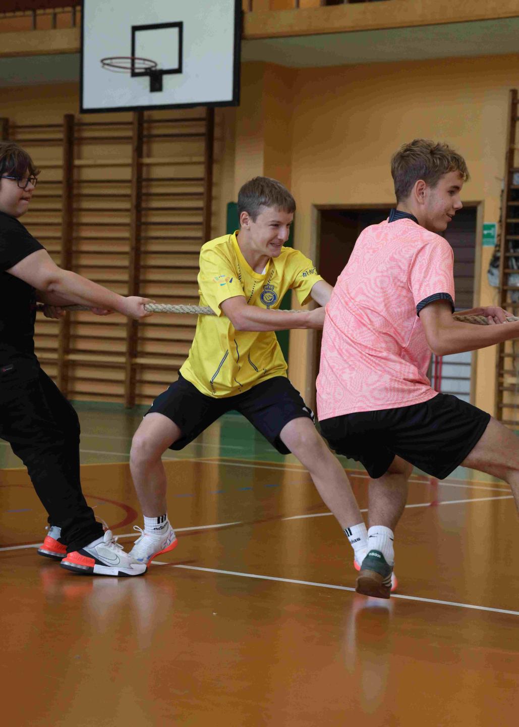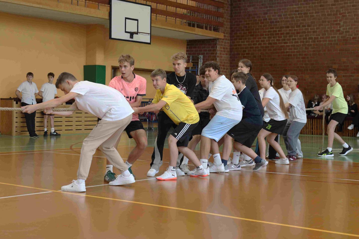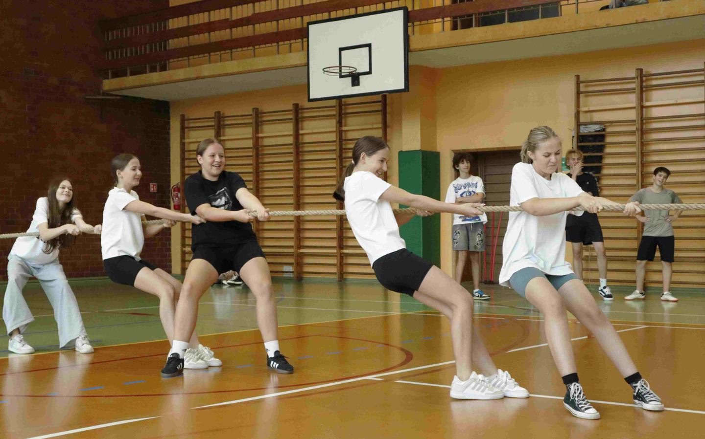 W ramach zajęć sportowych z nauczycielami wychowania fizycznego uczniowie uczestniczyli w bloku rekreacyjnym, który obejmował 4 konkurencje sportowe: rzuty do kosza, tor przeszkód, rzuty do celu, skoki klasowe i przeciąganie liny. W ogólnej klasyfikacji rywalizację wygrała klasa 1 b T. Oprócz sportowych zmagań młodzież klas pierwszych wzięła udział w zajęciach z pedagogami i psychologiem szkolnym oraz w animacjach z grupą sKuMaJ Team. Bardzo dziękujemy Radzie Rodziców i Zakładom Mięsnym HAGA PLUS za ufundowanie poczęstunku dla uczestników integracji. Dziękujemy również uczniom klasy fotograficznej za fotorelację oraz uczniom klasy gastronomicznej, która pod okiem p. Kingi Nikiel przygotowała poczęstunek. |
