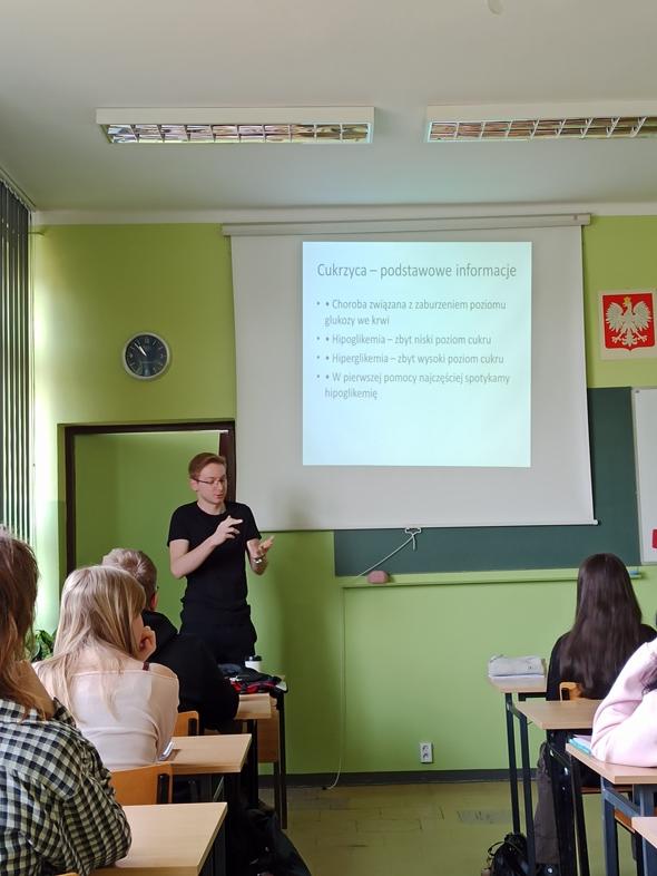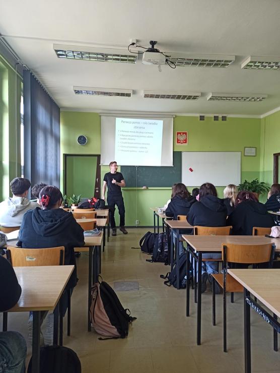 Młodzież uzyskała wiele cennych informacji o przyczynach tych stanów zagrożenia zdrowia lub życia, charakterystycznych objawach oraz pierwszej pomocy. Prowadzący przypomniał również o zasadach udzielania pierwszej pomocy osobie tonącej. Na zajęciach zostały wykorzystane informacje z najnowszych wytycznych ERC 2025 odnośnie leków, które ratownik pierwszej pomocy może podać poszkodowanemu. Dziękujemy Panu Jakubowi za wszystkie cenne informacje przekazane podczas dzisiejszego spotkania. Bożena Araszczuk |
