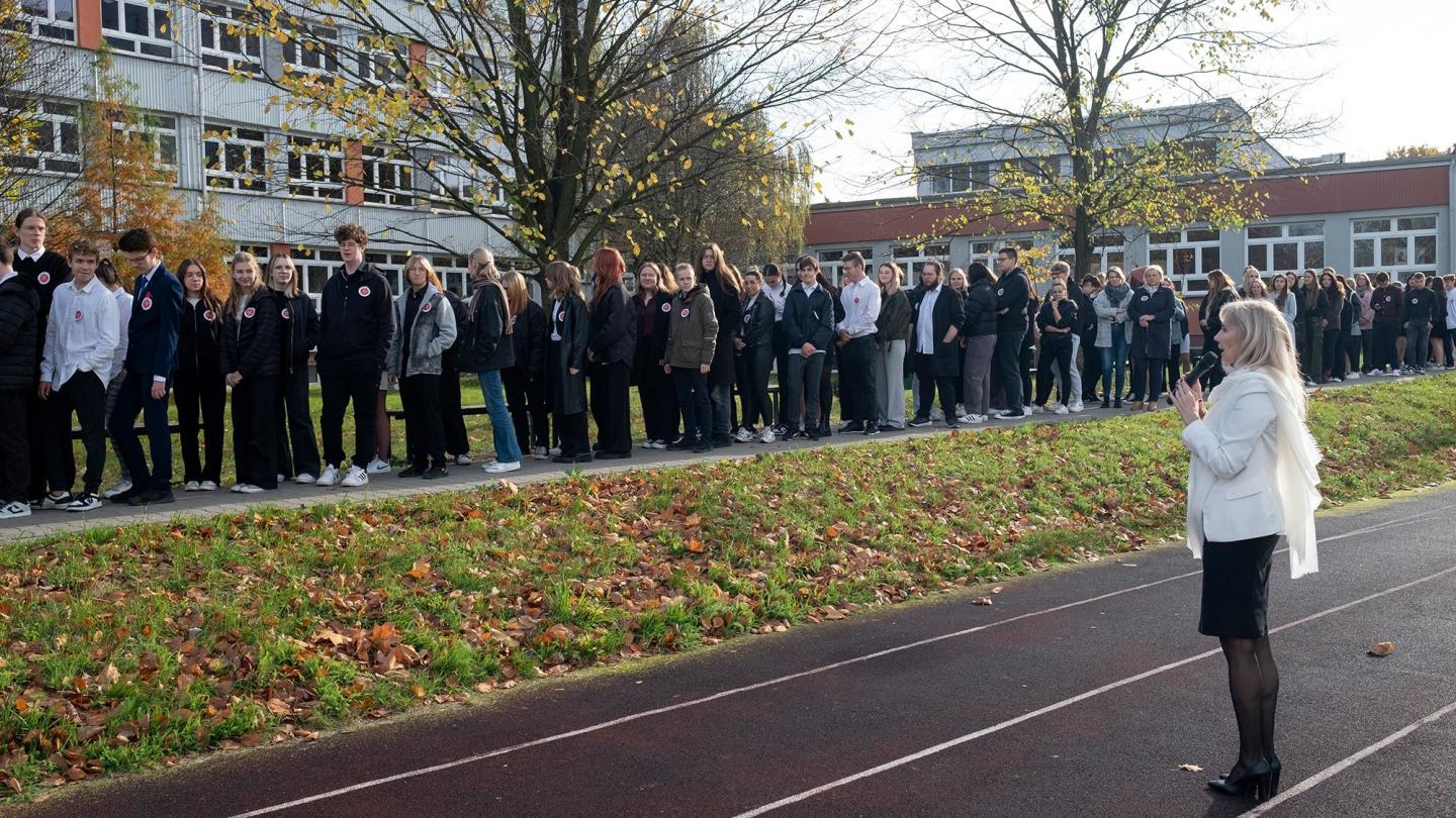 - Spotkaliśmy się w tutaj, aby w sposób wyjątkowy rozpocząć obchody Święta Niepodległości. Rok Szkolny 2023/2024 jest dla nas szczególny, ponieważ obchodzimy jubileusz 50-lecia szkoły. „Korfanty”, to szkoła z tradycjami, szkoła, która wychowuje w duchu patriotyzmu i wzajemnego szacunku. Dlatego za chwilę zatańczymy niezwykle ważny dla Polaków taniec, jakim jest polonez. Polonez od wieków jest integralną częścią polskiej tradycji i kultury. Wykonamy ten narodowy taniec z dumą, podkreślając w ten sposób naszą radość z tego, że jesteśmy Polakami - zwracała się do uczniów dyrektor szkoły Ewa Mentel. Katarzyna Barczyńska-Łukasik |