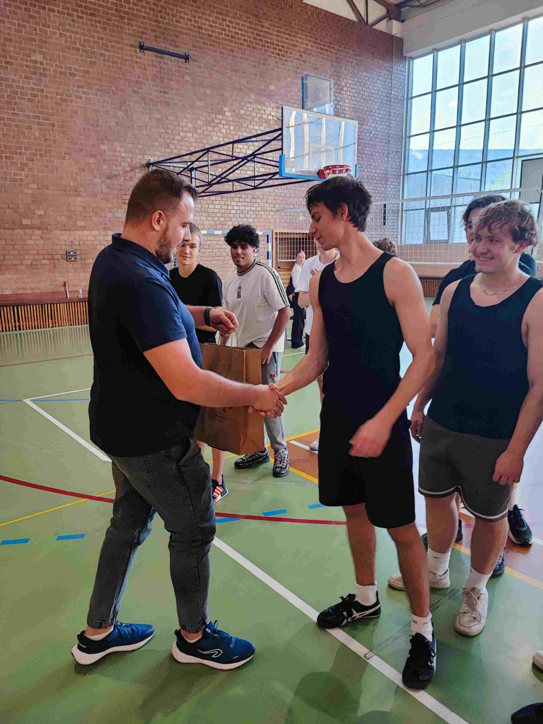 Rozgrywki rozpoczęły się od fazy grupowej, w której zespoły podzielono na 4 grupy po cztery drużyny. Każdy mecz dostarczał wielu wrażeń – od widowiskowych ataków, przez waleczne obrony, po zacięte końcówki, które często decydowały o awansie. Z każdej grupy do dalszego etapu przechodziły dwie najlepsze drużyny, tworząc finałową ósemkę. Tam rozpoczęła się rywalizacja w systemie pucharowym, w którym nie było już miejsca na błędy – porażka oznaczała pożegnanie z turniejem. Mecze półfinałowe i finałowy stały na wyjątkowo wysokim poziomie, a zawodnicy pokazali ogromną determinację i umiejętności. Po emocjonującym i wyrównanym finale zwyciężyła drużyna składająca się z zawodników: Wiktor Brachaczek, Jakub Dobosz, Paweł Janowski, Patryk Brocki. Ich dobra komunikacja, doświadczenie i zespołowa gra okazały się kluczem do sukcesu. Zwycięska drużyna otrzymała pamiątkowe złote medale, które z dumą zawisły na szyjach zawodników. Cztery najlepsze zespoły zostały uhonorowane nagrodami dla wszystkich zawodników, podkreślając wysoki poziom i zaangażowanie uczestników. Sędziowanie na najwyższym poziomie zapewniły: Za fotorelację dziękujemy Zuzannie Orawskiej, Milenie Kusz i Paulinie Stąpor. Zawody zakończyły się w sportowej atmosferze, a uczestnicy już zapowiedzieli chęć startu w kolejnych edycjach. To był dzień pełen pasji, zdrowej rywalizacji i radości z gry – dokładnie taki, jaki powinien być szkolny sport. Mirosław Bury Marcin Chodakowski |