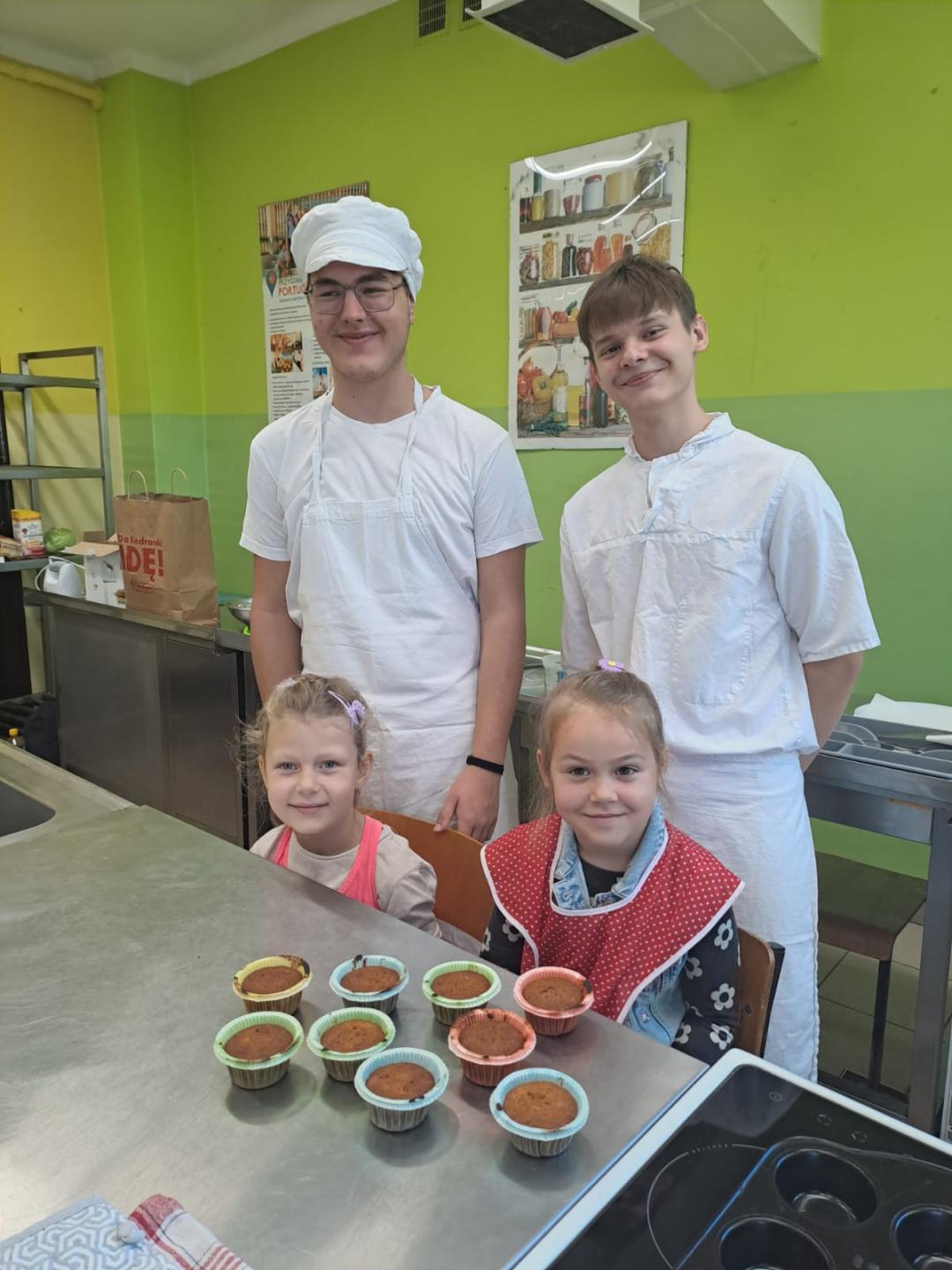 Uczniowie „Korfantego” z klasy 2 A BS w naszych pracowniach gastronomicznych wprowadzali przedszkolaków w tajniki pieczenia oraz dekorowania, co małym kucharzom sprawiło wiele radości i satysfakcji. Pomysłodawcą wydarzenia była nauczycielka wychowania fizycznego p. Anna Pancherz, a opiekę merytoryczną pełniły: kierownik praktyk zawodowych p. Kinga Nikiel oraz nauczyciel przedmiotów gastronomicznych p. Anna Labza. |