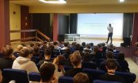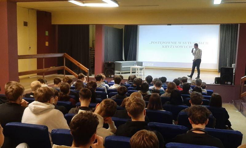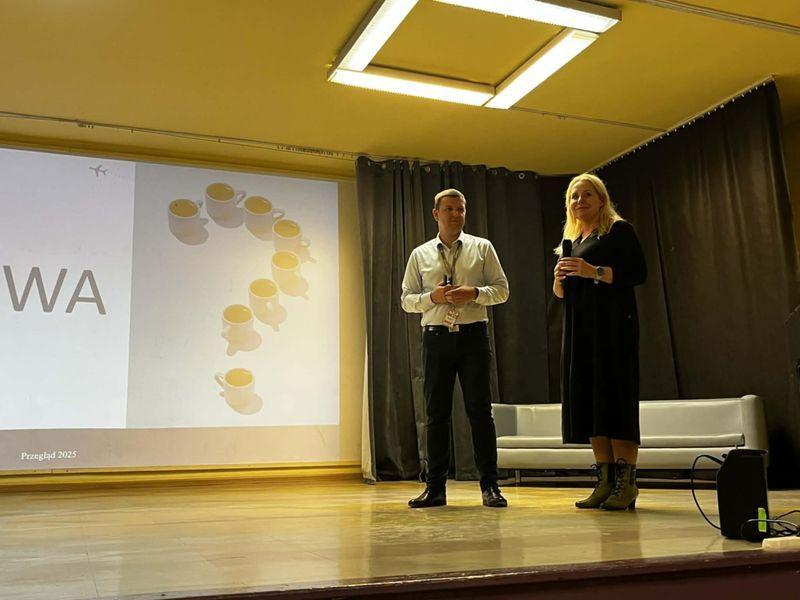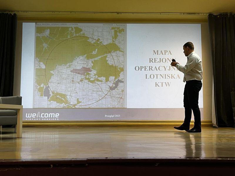 Pan Adam Brandys poprowadził wykład oraz szkolenie dotyczące zasad postępowania w sytuacjach kryzysowych na lotnisku. Uczniowie mieli okazję dowiedzieć się, jak w praktyce wygląda reagowanie na różnego rodzaju zdarzenia, jakie procedury obowiązują służby handlingowe oraz jakie kompetencje są kluczowe w pracy na terenie portu lotniczego. W spotkaniu uczestniczyli uczniowie Technikum Eksploatacji Portów i Terminali oraz klas logistycznych. Z dużą uwagą i zainteresowaniem słuchali prelekcji, aktywnie zadawali pytania i chętnie angażowali się w omawiane zagadnienia. Była to dla nich cenna lekcja praktycznej wiedzy, dzięki której mogli jeszcze lepiej poznać specyfikę swoich przyszłych zawodów. Serdecznie dziękujemy Panu Adamowi Brandysowi za poświęcony czas oraz za przekazanie naszym uczniom wartościowej i praktycznej wiedzy związanej z funkcjonowaniem lotnisk oraz obsługą sytuacji kryzysowych. B.O |