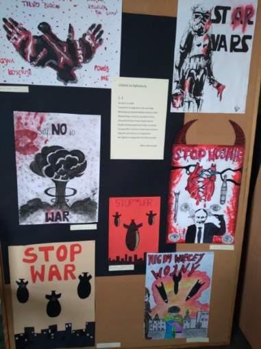 Efektem jest sporo prac plastycznych, zdjęć i narracji osobistych. Niektórych rozmów, dialogów i opowieści nie zarejestrowano z powodu dużego ładunku emocjonalnego – mamy nadzieję, że pozostaną w pamięci zbiorowej naszych uczniów. Pojawiły się też działania wspólne, np. plakat wykonany w trakcie klasowego pożegnania uczennicy z Ukrainy- Ilony. Sporo uczennic przyniosło prace wyrażające protest przeciwko sytuacji kobiet w Iranie i innych państwach gdzie obowiązuje szariat. Spośród odniesień literackich za najbardziej trafną uznano refleksję Wisławy Szymborskiej –„Nienawiść .(…) Ma bystre oczy snajpera i śmiało patrzy w przyszłość – ona jedna." Młodzież przekazała też pomysły dotyczące sposobów integracji uchodźców w szkole i przełamywania barier językowych. Nagrody dla zwycięzców w konkursie plastycznym (bony Empik) zostały zakupione przez Radę Rodziców i otrzymali je uczniowie: - I miejsce Gabriela Kapol (klasa 4 a TP) - II miejsce Amelia Bienicka (klasa 1 c LO) - III miejsce Wiktoria Mizera (klasa 2 c LO) - wyróżnienie Alicja Kawecka (klasa 3 b LO). Pomagali nam uczniowie z Ukrainy - Ilona, Vlada, Anastazja, Dmytro, Rostislav, Yuriy. Napisy w języku arabskim wykonała Wanessa Kawik. Dziękujemy za pomoc i udział w przedsięwzięciu – paniom Katarzynie Śnieg, Monice Długosz, Żanecie Wiercioch, Krystynie Szczęsny, Beacie Dębowskiej. Katarzyna Gibes |