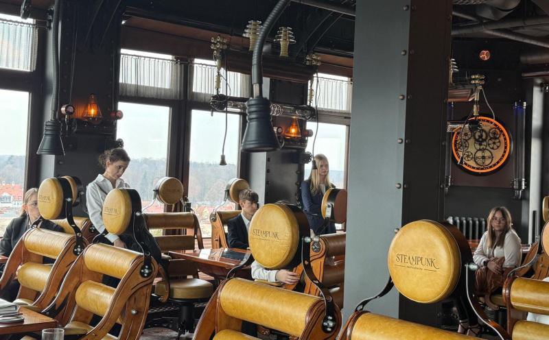 Naszą przygodę rozpoczęliśmy od spaceru po malowniczym parku otaczającym Zamek w Pszczynie. To niezwykłe miejsce zachwyciło uczniów swoim klimatem oraz pięknem przyrody, stanowiąc doskonałe wprowadzenie do dalszej części wyjazdu. Następnie udaliśmy się na zwiedzanie zamku, podczas którego – korzystając z audioprzewodników – mogliśmy przenieść się w czasie i poznać fascynującą historię tego wyjątkowego obiektu oraz jego dawnych mieszkańców. Kolejnym punktem programu była wizyta w nowoczesnym obiekcie hotelowym „Wieża Wodna”. Tam uczniowie mieli niepowtarzalną okazję spotkać się z menedżerem hotelu oraz szefem kuchni. Podczas inspirującej rozmowy poznali aktualne trendy w gastronomii i hotelarstwie, dowiedzieli się, jak wygląda praca „od kuchni”, a także jakie wyzwania i możliwości czekają na nich w przyszłości zawodowej. Uczniowie zwiedzili również część mieszkalną obiektu oraz zaplecze gastronomiczne, co pozwoliło im zobaczyć w praktyce funkcjonowanie nowoczesnego hotelu. Na zakończenie udaliśmy się do restauracji typu bistro, gdzie czekało na nas kolejne ciekawe doświadczenie. Uczniowie mieli możliwość zadawania pytań pracownikom, poznając realia pracy w gastronomii oraz zdobywając cenne wskazówki od praktyków. Spotkanie przebiegło w bardzo miłej atmosferze i było świetnym podsumowaniem całego dnia. Wycieczka do Pszczyny była nie tylko okazją do integracji i odpoczynku, ale przede wszystkim cenną lekcją zawodu. Uczniowie wrócili pełni inspiracji, nowych doświadczeń i motywacji do dalszego rozwoju. To był naprawdę wyjątkowy dzień! B.O Ż.C-M |