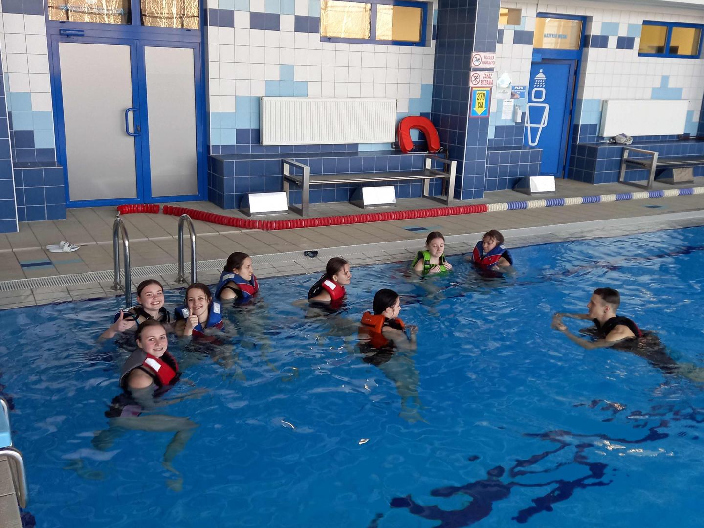 Zajęcia z ratownictwa wodnegoZajęcia z ratownictwa wodnego mają dostarczyć podstawową wiedzę i umiejętności praktyczne potrzebne przy udzielaniu pomocy poszkodowanemu w wodzie i nad wodą. Zajęcia prowadzone są w oparciu o program autorski . Niewątpliwym udogodnieniem dla uczniów jest połączenie szkoły z pływalnią "Laguna", gdzie odbywają się zajęcia. Sposób realizacji