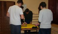 Stażyści z klas ekonomicznych, logistycznych i gastronomicznych spotkali się na auli, aby uczestniczyć w ćwiczeniach oraz zabawach integracyjnych.