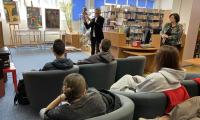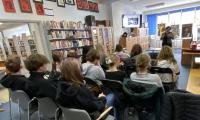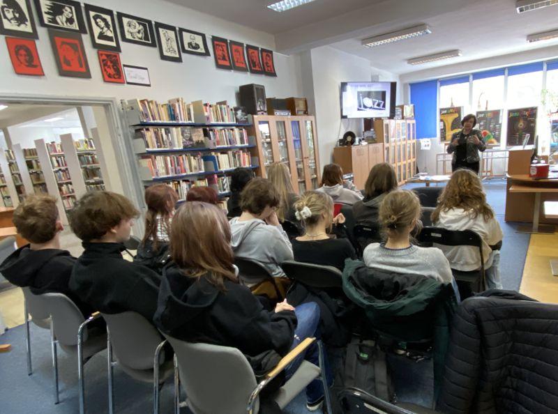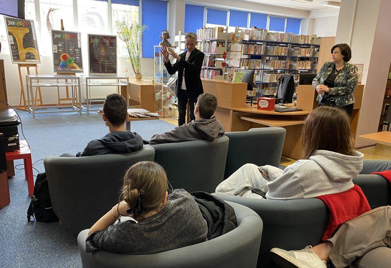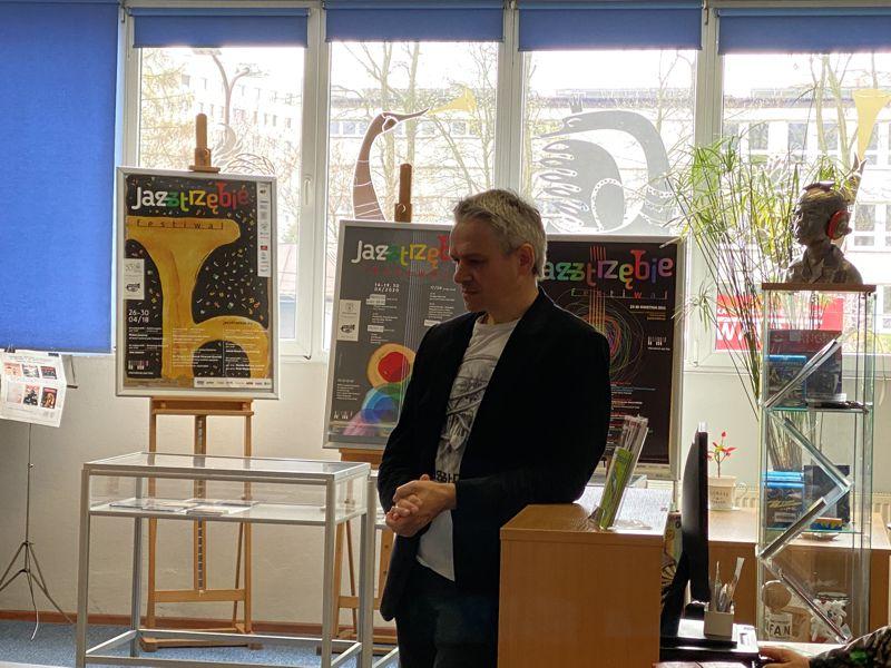 Była to doskonała okazja do poznania genezy tego gatunku muzycznego, jego odmian, czołowych artystów, których postacie przybliżyła nam pani Kornelia Jasionek z Mediateki. Była też okazja do posłuchania charakterystycznych kawałków muzycznych. Następnie pan Przemysław Strączek opowiedział o początkach swojej przygody z muzyką, o rozwoju kariery, muzykach z którymi miał okazję grać na scenie i nagrywać płyty. Było też wiele o instrumentach wykorzystywanych przez jazzmanów, o historii jastrzębskiego festiwalu JAZZTRZĘBIE, który odbywa się rokrocznie od 2014 r. w naszym mieście, a organizatorem jest właśnie pan Strączek. Graficy mogli przy okazji zobaczyć plakaty promujące dotychczasowe edycje tej imprezy. Był czas na wybranie swoich faworytów wśród tych projektów. Uczniowie zostali również zaproszeni do udziału w konkursie na projekt afisza imprezy jazzowej. Na zakończenie jastrzębski artysta zachęcił do uczestnictwa w imprezach zbliżającego festiwalu. Było to dla młodzieży bardzo inspirujące spotkanie. BD |