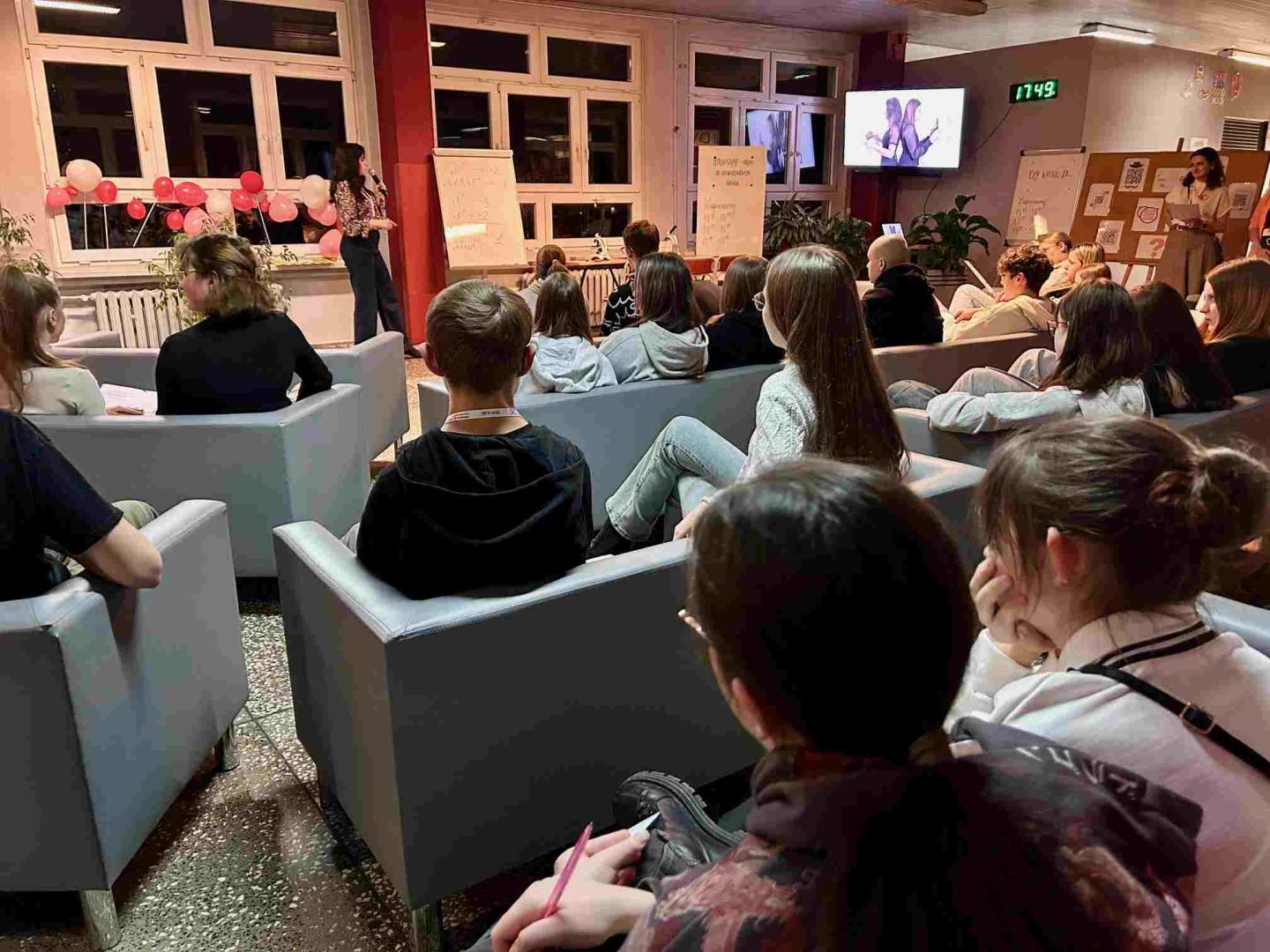 Dla osób chcących odpocząć przygotowano spokojniejszą przestrzeń: w Bibliotece czekały magiczne anaglify, gry stołowe oraz miejsce do integracji. Równolegle na sali kinowej odbywała się Debata Oxfordzka zatytułowana „Sztuka argumentacji”. Uczniowie mogli zobaczyć, jak w praktyce wygląda kulturalna, oparta na zasadach wymiana poglądów oraz jak budować logiczne, przekonujące argumenty. Debata cieszyła się dużym zainteresowaniem i pokazała wysoki poziom zaangażowania uczestników. Podwieczorek dla ósmoklasistów okazał się dobrym wydarzeniem łączącym naukę, kreatywność i integrację. Bogaty program zajęć pozwolił gościom poznać różnorodność szkolnej oferty oraz poczuć atmosferę panującą w naszej placówce. Dzięki zaangażowaniu nauczycieli i uczniów przygotowano spotkanie, które nie tylko bawiło, ale także inspirowało i motywowało do dalszej edukacji. Cieszymy się, ze Zespół Szkól Nr 2 odwiedziło, aż 80 uczniów klas ósmych. |