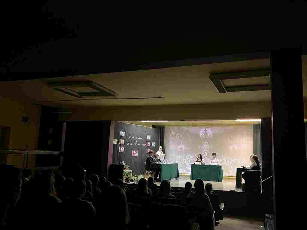 Rodzice uczniów mieli możliwość porozmawiać oraz wymienić doświadczenia z dyrekcją szkoły, nauczycielami i pedagogami. Ponadto poznali ofertę edukacyjną, wizję i misję szkoły. Spotkanie odbyło się w ciepłej i przyjaznej atmosferze. Pierwsza część wydarzenia rozpoczęła się o godzinie 17:10. Uczniowie otrzymali zaproszenie do udziału w matematycznym escape roomie zatytułowanym „Drużynowe supermoce. Złam kod i otwórz skrzynię skarbów”. Zadaniem uczestników było rozwiązywanie zadań logicznych i matematycznych, które prowadziły do odkrycia kolejnych wskazówek i ostatecznego otwarcia tajemniczej skrzyni. Współpraca i szybkie myślenie okazały się kluczem do sukcesu, a atmosfera zdrowej rywalizacji towarzyszyła wszystkim drużynom. Równolegle odbywał się panel z języka polskiego „Poznaj sekrety i ciekawostki o Panu Tadeuszu”. Uczniowie mieli okazję zgłębić mniej znane wątki epopei, poznać konteksty historyczne oraz wysłuchać interesujących anegdot związanych z dziełem Adama Mickiewicza. Spotkanie łączyło formę minilekcji z interaktywną rozmową, dzięki czemu uczniowie mogli zadawać pytania i aktywnie uczestniczyć w dyskusji. Po pierwszym bloku zajęć wszyscy zostali zaproszeni na wspólny podwieczorek. Uczniowie z technikum gastronomicznego przygotowali przepyszne przekąski oraz desery, a swobodna atmosfera sprzyjała rozmowom z nauczycielami oraz uczniami szkoły . W trakcie przerwy goście mogli: