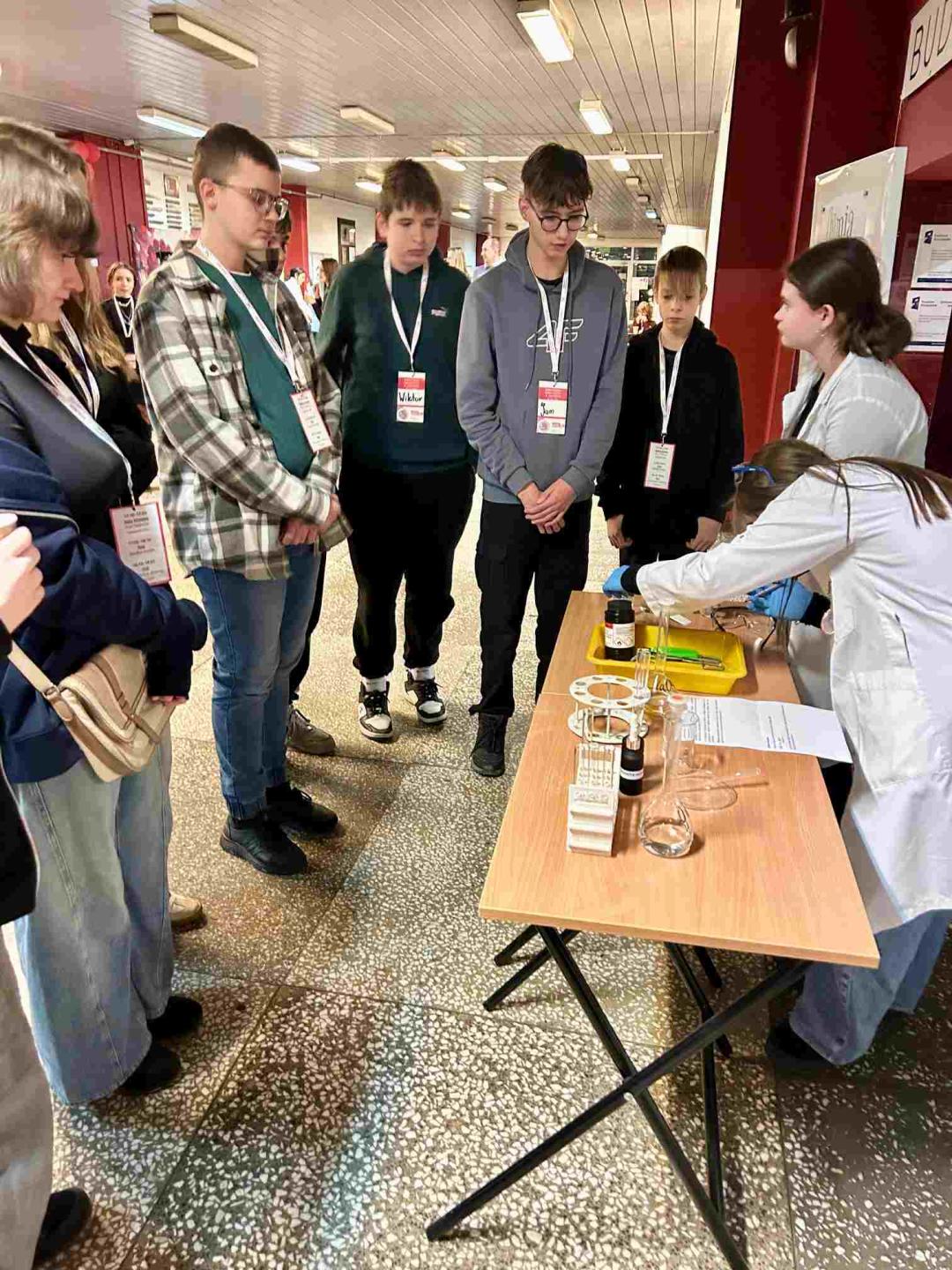 Był to czas, który pozwolił ósmoklasistom zyskać praktyczne, autentyczne informacje na temat nauki w naszej szkole. O godzinie 18:10 rozpoczęła się druga część wydarzenia, obejmująca liczne aktywności praktyczne i pokazowe. Pod hasłem „Doświadcz, dotknij, zrozum” przygotowano stanowiska, przy których uczniowie mogli: