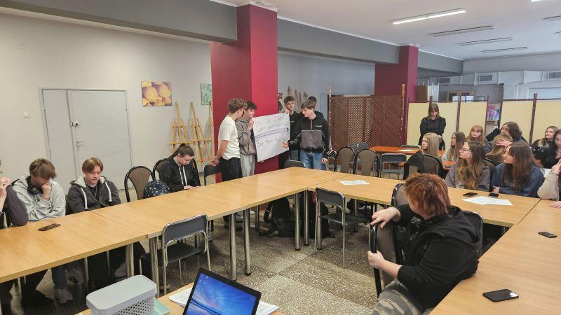Tematem zajęć było projektowanie działań wspierających transformację. Uczniowie pracowali w grupach, próbując odpowiedzieć na ważne pytanie „Jak zmieniać świat lokalnie?”. Ciekawe i odważne pomysły pokazały, jak bardzo kreatywni są nasi uczniowie. Gdyby dało się wszystkie ich pomysły zrealizować, to do 2036 roku Jastrzębie-Zdrój stałoby się metropolią z prawdziwego zdarzenia. Pomysły są, teraz trzeba tylko zadbać o możliwość ich realizacji… JK |