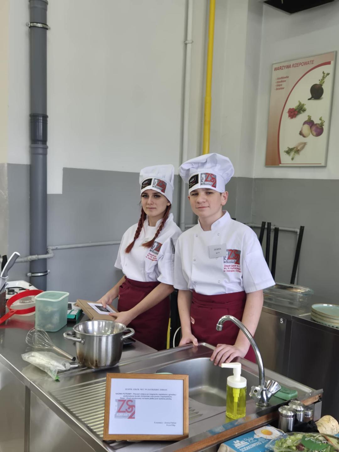Tematem przewodnim konkursu była „Kuchnia staropolska w roli głównej”. Uczniowie przygotowali między innymi cielęcinę na gruszce / puree z topinamburu oraz kremem szodonowym z opalaną pianką. Choć tym razem nie udało się zdobyć miejsca na podium, udział w konkursie był dla nich cennym doświadczeniem. Uczniowie mieli również okazję otrzymać wartościowe wskazówki i rady od profesjonalnych kucharzy zasiadających w jury. Beata Knopek |