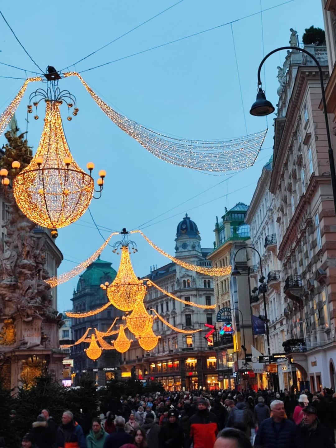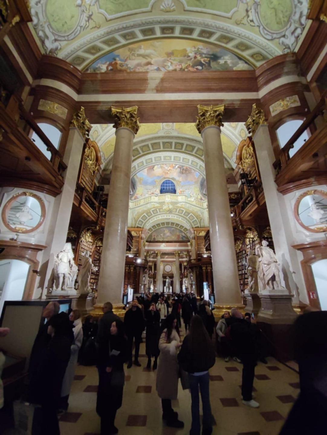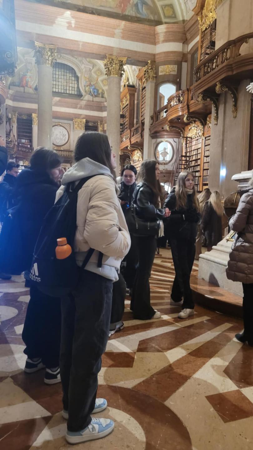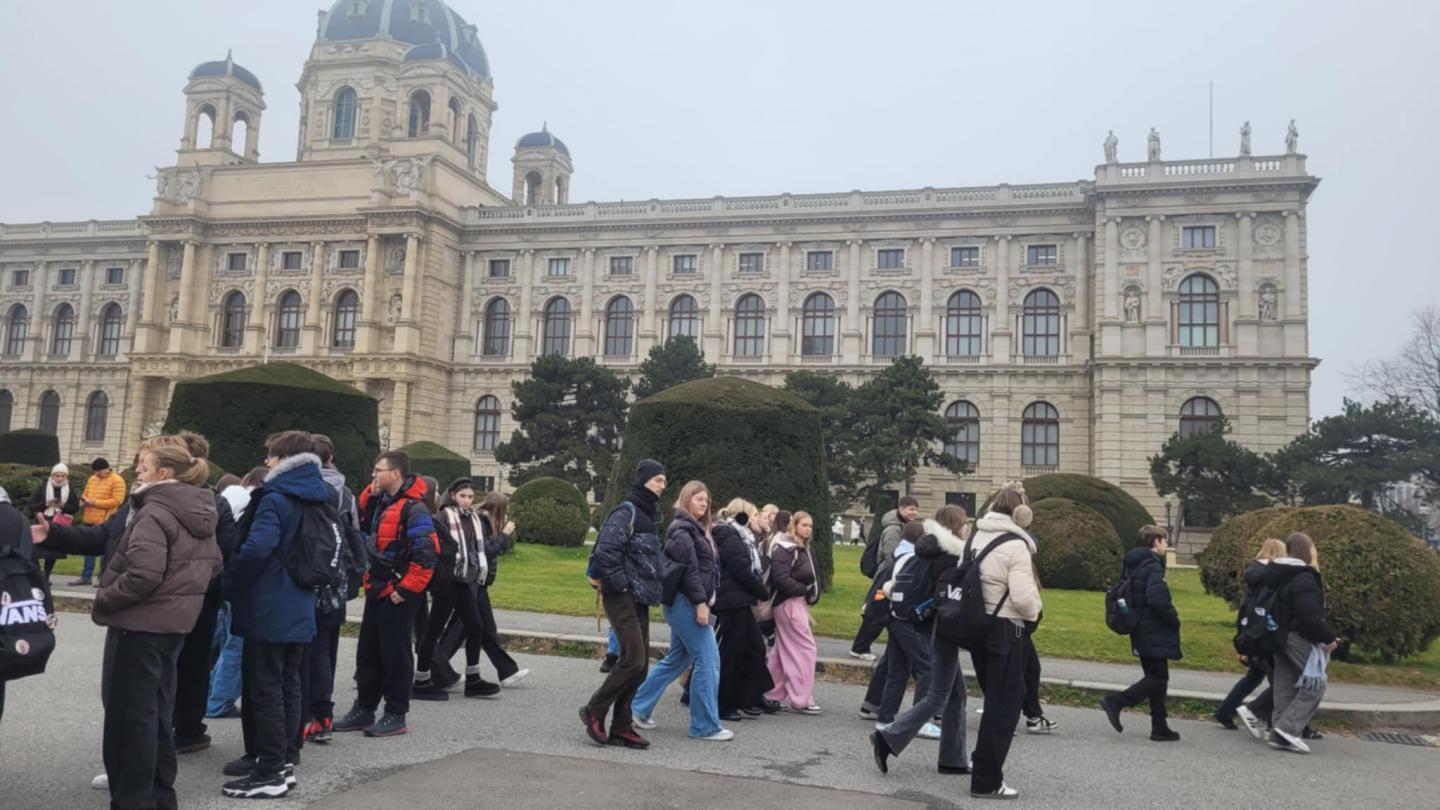 Naszą wycieczkę rozpoczęliśmy od Hundertwasserhaus – niezwykłego budynku zaprojektowanego przez artystę Friedensreicha Hundertwassera. Kamienica charakteryzuje się nieregularnymi kształtami, kolorowymi ścianami i zielonymi dachami, co czyni go jednym z najbardziej osobliwych i rozpoznawalnych miejsc w mieście. Kolejnym punktem był Hofburg – potężny pałac, który przez wieki był siedzibą Habsburgów, jednej z najpotężniejszych dynastii Europy. Spacerując po dziedzińcach, dowiedzieliśmy się, że kompleks ten powstawał od XIII wieku i łączy różne style architektoniczne, od renesansu po barok i klasycyzm. Dziś mieści się tu m.in. oficjalna rezydencja prezydenta Austrii. W samym centrum miasta zatrzymaliśmy się przy Katedrze św. Szczepana, która jest jednym z najważniejszych symboli Wiednia. Jej gotyckie wieże dominują nad panoramą miasta, a kolorowy dach z mozaikowymi płytkami jest rozpoznawalny na zdjęciach podróżników z całego świata. Wieża ma aż 136 metrów wysokości, a budowę katedry zaczęto w XIV wieku. Zawędrowaliśmy także do Austriackiej Biblioteki Narodowej. Zbiory biblioteki liczą ponad 12 milionów dokumentów — to jedna z największych bibliotek w Europie. Na koniec dotarliśmy do imponującego Ratusza w Wiedniu, który zachwyca neogotycką architekturą i strzelistymi wieżami. Wokół ratusza znajduje się ogromny plac, który zimą zamienia się w jedno z największych jarmarków bożonarodzeniowych w Wiedniu z setkami stoisk i ogromnym lodowiskiem. Na stoiskach można było spróbować tradycyjnych austriackich smakołyków, a także kupić rękodzieło i ozdoby świąteczne. Wycieczka do Wiednia była nie tylko okazją do zobaczenia najważniejszych zabytków, ale też do poczucia wyjątkowej atmosfery tego miasta. Była to niezapomniana lekcja historii i sztuki. Opiekunowie wycieczki: Żaneta Ciuksa-Macoń Małgorzata Lach Agata Tucka-Marek Mirosław Bury |