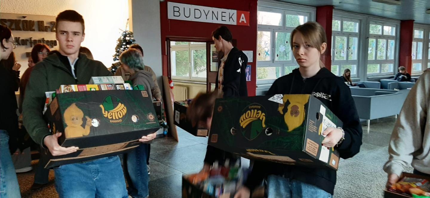 Uczniowie naszej szkoły już po raz czwarty włączyli się do ogólnopolskiej akcji PACZKA DLA BOHATERA. W jej ramach, pomoc w ciągu całego roku a szczególnie w okresie świątecznym, trafia do żołnierzy - weteranów II wojny światowej, żołnierzy podziemia niepodległościowego, osób represjonowanych w okresie komunizmu oraz żołnierzy poszkodowanych w czasie współczesnych misji pokojowych. W akcję tradycyjnie włączają się służby mundurowe z całej Polski. W tym roku nawiązaliśmy współpracę z przedstawicielami Służby Więziennej z woj. śląskiego, którzy, podobnie jak my, chętnie poświęcają swój czas, energię i dobre serce dla szlachetnego celu – pomagania potrzebującym. Tym razem nasze dary przeznaczono głównie dla 25 żyjących jeszcze weteranów II wojny światowej, mieszkających w naszym województwie. Zbiórka produktów żywnościowych i środków czystości, poprzedzona akcją informacyjną prowadzona była w grudniu, zaangażowało się w nią ok. 100 uczniów z 8 klas. Dzięki hojności uczniów i ich rodziców udało się zebrać prawie 260 kg produktów. W zbiórkę, segregację produktów, sprawdzanie ich przydatności dla potrzebujących i pakowanie 9 wielkich kartonów uczniowie włożyli dużo serca i zapału. Odbiór darów przez przez wolontariuszy Służby Więziennej był połączony z bardzo ciekawą lekcją, którą przeprowadzili dla uczniów kl. III a LO, biorących aktywny udział w akcji. W myśl zasady „więcej szczęścia jest w dawaniu niż braniu”, uczniowie i ich rodzice przyczynili się do pomocy BOHATEROM, którym tak wiele zawdzięczamy. Składamy serdeczne podziękowania wszystkim, którzy przyczynili się do sukcesu tej pięknej i pożytecznej akcji. Joanna Zdziebło |